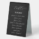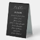 Wedding or event black table seating. List the guests who will sit at each table, and add to each individual stand. Combine couples, or list each individually as you choose. Eight lines can be used for names.