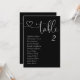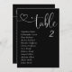 Modern Black Wedding Table Seating Chart Cards are the perfect finishing touch for your wedding reception. Guide your guests to their seats with this unique seating chart. The cards are perfect for hanging or displaying on a board or wall. The design features a minimal script heart font in white on a black background. The design is printed on both sides.