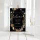 This stylish & elegant wedding welcome poster features gorgeous hand-painted watercolor wildflowers arranged as a lovely wreath that's perfect for spring, summer, or fall weddings. Find matching items in the Moody Black Boho Wildflower Wedding Collection.