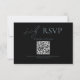 Modern love deserves a modern RSVP card. This elegant black wedding RSVP card features a clean minimalist layout with timeless blue typography and QR code. Ideal for contemporary, romantic, or upscale wedding themes, the design balances simplicity with emotional warmth. Customizable for your names, date, venue, and all key details.
