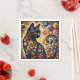 Black Whimsical Cat Abstract Floral Painting Art Napkins