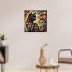 Black Whimsical Cat Abstract Floral Painting Art Poster