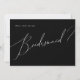 This black whimsical script bridesmaid proposal card is perfect for your classic simple black and white minimal modern boho bridal party proposal. The design features elegant, delicate, and romantic handwritten calligraphy lettering with formal shabby chic typography. The look will go well with any wedding season: spring, summer, fall, or winter! The product is editable and has plenty of blank space, so you can add your own graphics or pictures if you want to customize it! Please feel free to reach out with any questions regarding the product's design; we are happy to help!