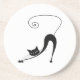 Black Whimsy Kitty 2 Sandstone Coaster
