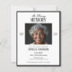Budget elegant black and white memorial service invitation template featuring a modern minimalist layout, perfect for honoring a loved one with timeless style. This design showcases a centered photo area framed by bold black borders, paired with classic serif typography for the name and dates, and delicate cursive accents for a personal touch. The simple black and white color scheme lends a refined and dignified tone suitable for funeral announcements or celebration of life ceremonies. Ideal for those searching for customizable memorial invitations with a clean, professional aesthetic, this affordable double-sided card includes space for 2 photos and clear event details in an easy-to-read format.