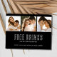 Budget-friendly funny wedding save-the-date postcards in a funny black and white typography design that reads "Free drinks (and we're getting married)". Customize this wedding save the date with your photos and wedding details and mail to family and friends.