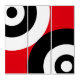 Abstract art with black and white circle geometric shapes on red.