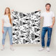 Black White Abstract Flowers: Elegant Pattern Fleece Blanket