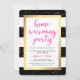 These glam, elegant invitations feature black and white stripes, faux gold border and confetti, and modern pink typography.