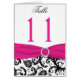 Black, White, and Fuchsia Damask Table Number Card