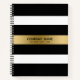 Black and white stripes pattern with a gold stripe accent and customizable text. Elegant chic modern design.