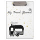 Black and white with sparkle of gold caravan clipboard with the wording "my travel journey" all editable that you can personalize and make your own.