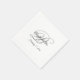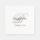 Wedding napkins with a minimalist couple's monogram in a fancy calligraphy script in gray and black on a white background.