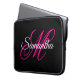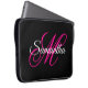 Black White and Hot Pink Fancy Script Monogram Laptop Sleeve