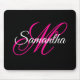 Black White and Hot Pink Fancy Script Monogram Mouse Pad