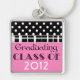 This pink, black, and white polka dot and striped graduation keychain would make a nice gift for the graduate with style.