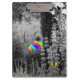 Need a clipboard to keep up with work papers, household lists, or gardening ideas? This unique clipboard features a black--white photo of a garden with a happy rainbow twist. Customize it with your own initials in gold - just type them in where indicated. Or, if initials aren't your thing, then delete the placeholder initials. The trees and flowers appear almost monochromish, mostly black-and-white with slightly colored hues. The garden visitor, sitting on a bench, appears to be dressed in vivid rainbow colors. This image is derived from an original photograph of a beautiful botanical garden, with digital filters applied to give the visitor a shirt of many colors. This clipboard is a reminder of summer gardens where you can keep your important information together, wherever you go, in personal style.