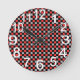 Black white and red chequered round clock