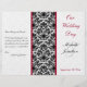 This modern black, white, and red damask wedding program or order of service is fully customizable. It is designed to be folded down the center. ****PLEASE NOTE that the higher grade paper is a lightweight cardstock that does not fold well. You would need to pre-score it with a sharp blade before folding. The value paper is what I suggest using, as it is like a good quality magazine paper. If you have any questions, or need help customizing this with your own info, or if you would like the red changed to another color, please contact niteowlstudio@gmail.com.
