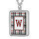 A classic and cozy plaid pattern gets a stylish twist by combining a classic combination of a white background with black and gray bars with a rich red accent. Customize the monogram on this necklace with your initial to make this piece of jewelry uniquely your own.