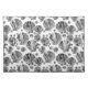 Placemat in a pattern of black, white, and shades of silver to graphite gray / grey semi-abstract sea shells on a white background