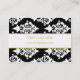 Elegant custom bakery business card done with a black and white damask frame and a golden yellow accent. Graphics of a lovely black and white wedding cake decorates the front of the card. Perfect for a bakery shop, party shop, or an independent custom baker. Customize the text fields to personalize for yourself or your shop.