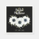 Napkins in 2 sizes with elegant black and white anemone flowers and leaves watercolor on a black background with your names at the top in chic white lettering and your wedding date below. Botanical with a modern yet simple choice for any season wedding or event. Change the black background to any color to match your wedding theme. COORDINATING wedding invitations, RSVP cards, reception cards, menu cards and more available in our store to complete your invitation suite ---> http://bit.ly/2WEA0w5 <---