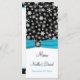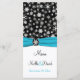 This black and white snowflakes menu card with aqua blue FAUX ribbon and snowflake medallion matches the wedding invitation shown below. It is designed on a rack card with a glossy front, and matte finish back. If you would like a menu card on invitation paper to match your invitations, or if you have any requests for additional items or changes, please email niteowlstudio@gmail.com with your request.