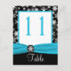 Black, White, Aqua Snowflakes Table Number Card