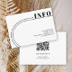 This elegant black and white enclosure card for weddings showcases a chic and simple arch along with modern typography. The design highlights a horizontal arched frame and a curved line that cleverly incorporates the word "INFO" extending towards the right side. On the back of the card, a QR code is included to provide easy access to all the necessary wedding details for the guests.