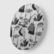 This Black and White Atomic Pattern Round Acrylic Wall Clock is black and white and retro all over. The design features a replica of a vintage 1950's fabric, as seen through the lens of a black and white television program. The modern art shapes include everything from the abstract to the fish! There are small fish swimming to the left, while blowing bubbles. There are larger black and white fish swimming to the right, while blowing gray bubbles. And there are dark gray jellyfish, who don't seem to be doing much of anything. This is the perfect design for anyone who loves fish, fabric, and items with a retro feel. This black and white design proves that you don't have to have color to be colorful. It's a kitschy blast from the past!