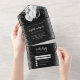 A black background, decorated white balloons, with white and faux silver glitter sparkles on the inside. Personalize and add names, party details, RSVP date, return address and name.
