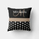 Black White Beige Monogram Script Polka Dots Throw Pillow