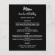 A classic black background. White text. Personalize and add your name, date and the menu.