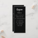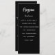 Program and menu card. Personalize and add your name, date and the menu. Black background, white text.