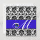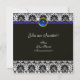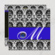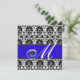 BLACK WHITE BLUE DAMASK MONOGRAM Sapphire Invitation