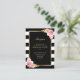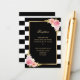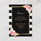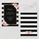 Elegant black and white striped floral wedding reception card featuring watercolor blush pink flowers and gilded greenery. Matching items available.