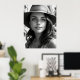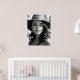 This black and white generative AI art features bohemian woman with wavy black hair and beautiful eyes, wearing a stylish bohemian dress and brimmed hat. For further customization, feel free to contact me at kbasandra@gmail.com.