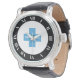 Personalized wrist watch with bold white roman numbers against a black border surrounding your logo.