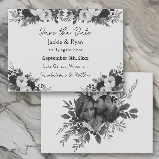 Black & White Botanical Wedding Save the Date