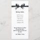 Elegant double-sided wedding menu card with chic black and white bow design. Customize the back with a thank you note, wedding timeline, or meaningful message to make it truly special.