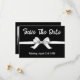 Modern black and white Save the Date card with elegant bow design and customizable photo. A timeless way to announce your wedding and share your love story in style.