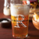 Beer glass favor for your groomsmen where you can personalize the beer tumbler with your groomsman's name and the date in black atop their initial in white with a bow tie divider.