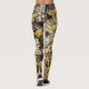 Black White Brown Tones Gold Floral Toile Leggings