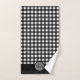 The background on this attractive bath towel set is a black and white buffalo plaid pattern. At the bottom of the bath towel and hand towel is a black border with a gray circle banner and a matching plaid bear image. The wash cloth has the same buffalo plaid pattern, but not the border or bear image. Be sure to see the matching products, including pillows, in our store. Appropriate for the Holiday season, or all through the year.