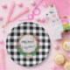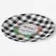 Relax and enjoy your guests thanks to those modern Holiday paper plates . They have a black and white Buffalo check background and a red berries wreath . Personalize them with your own text using the template . Don't forget to look for the matching paper napkins .