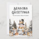 Send warm wishes to clients, partners, or employees with this charming business Christmas card featuring a festive watercolor snowman design. The front showcases a delightful black and white snowman wearing a top hat and gold scarf, surrounded by golden accents, festive trees, and presents—bringing a whimsical and cozy winter feel.