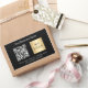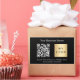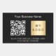 A stylish, classic black background. Personalize and add your business name, your own business logo, qr code to your website and a text. White text.