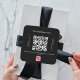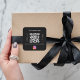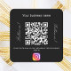 A stylish, classic black background. Personalize and add your business name, your own qr code to your Instagram account and a text. White text. With the text x2: Follow us!