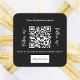 A stylish, classic black background. Personalize and add your business name, your own qr code to your weburl and business logo. White text. With the text x2: Follow us!
